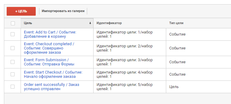 An automatic set of goals has been added to track the conversion of sites created on the Hotlist.biz platform: