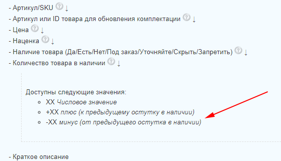 Added the ability to update when importing the "quantity of goods in stock" not only by a numerical value, but also by a mathematical expression.