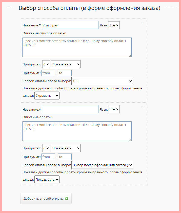 Added an additional function for selecting a payment method on the checkout page. The function differs in that it allows you to select a payment method before placing an order, as well as add a description for the buyer.