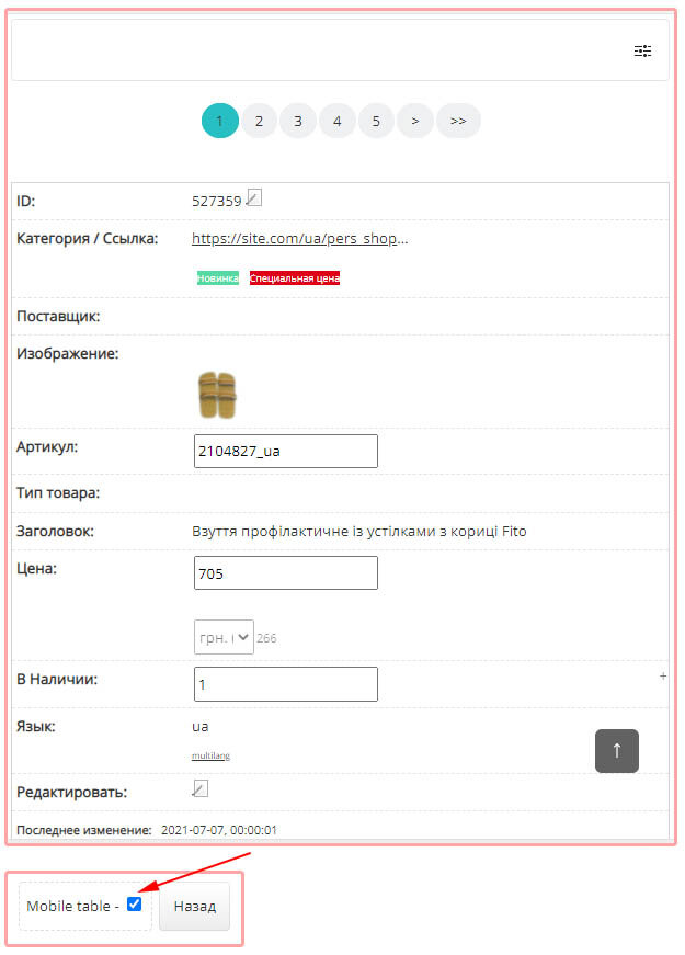 Added mobile display of the table with products in the Admin Center