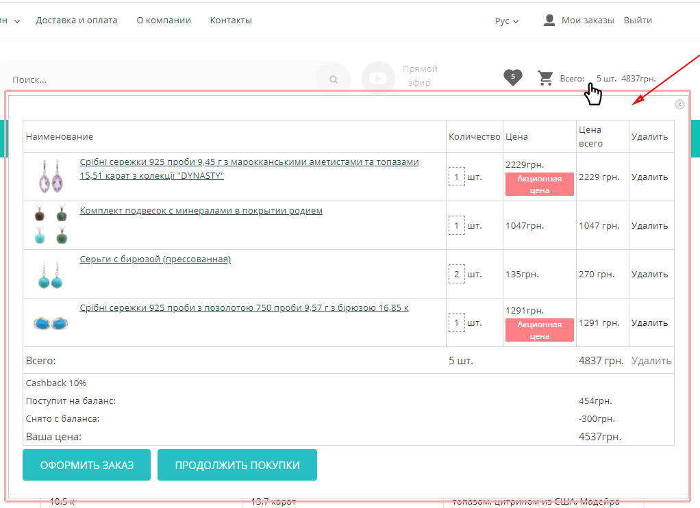 Added instructions for creating a pop-up block with the contents of the shopping cart. In the example, the script is triggered when you hover over the trash icon