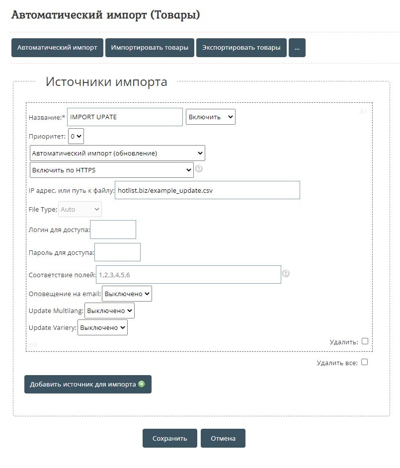 Updated automatic import of goods. Added the ability to use multiple sources for import. Import can be carried out with an individual indication of the correspondence of the fields.