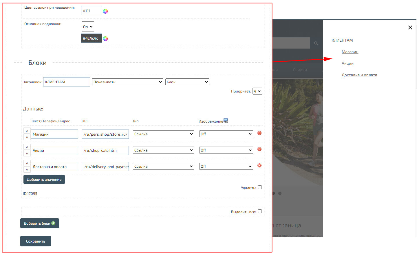 “Slide menu widget” is a block with a button that allows you to create a pop -up/extending window, with points and subparagraphs. The widget can be used as the main menu or as an auxiliary. To accommodate the widget, use the code {HOTENGINE-SC:slide_menu_widget}.