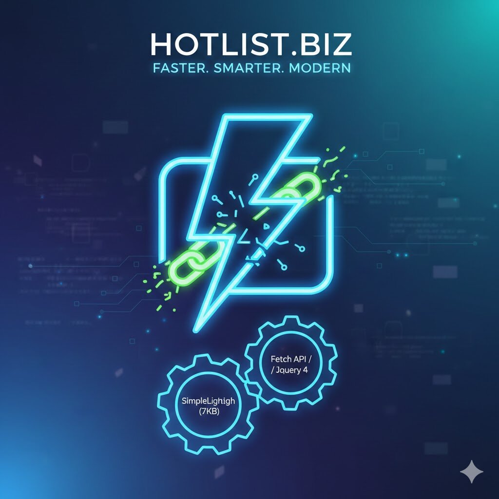 Na platformie Hotlist.biz zaktualizowano widżet menu mobilnego. Główna zmiana polega na całkowitym usunięciu biblioteki jQuery. Teraz wszystkie elementy menu i funkcje interaktywne są realizowane w czystym JavaScript.