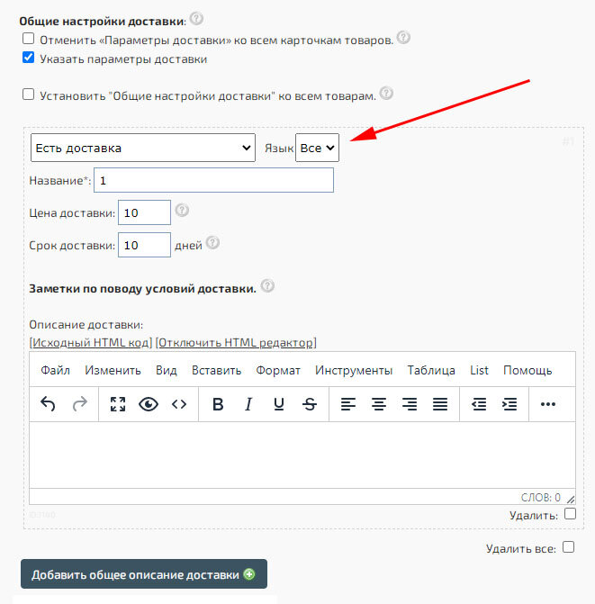 Edytor ogólnych opisów sposobów wysyłki został zaktualizowany. Dodano możliwość używania wielu języków podczas opisywania warunków wysyłki.