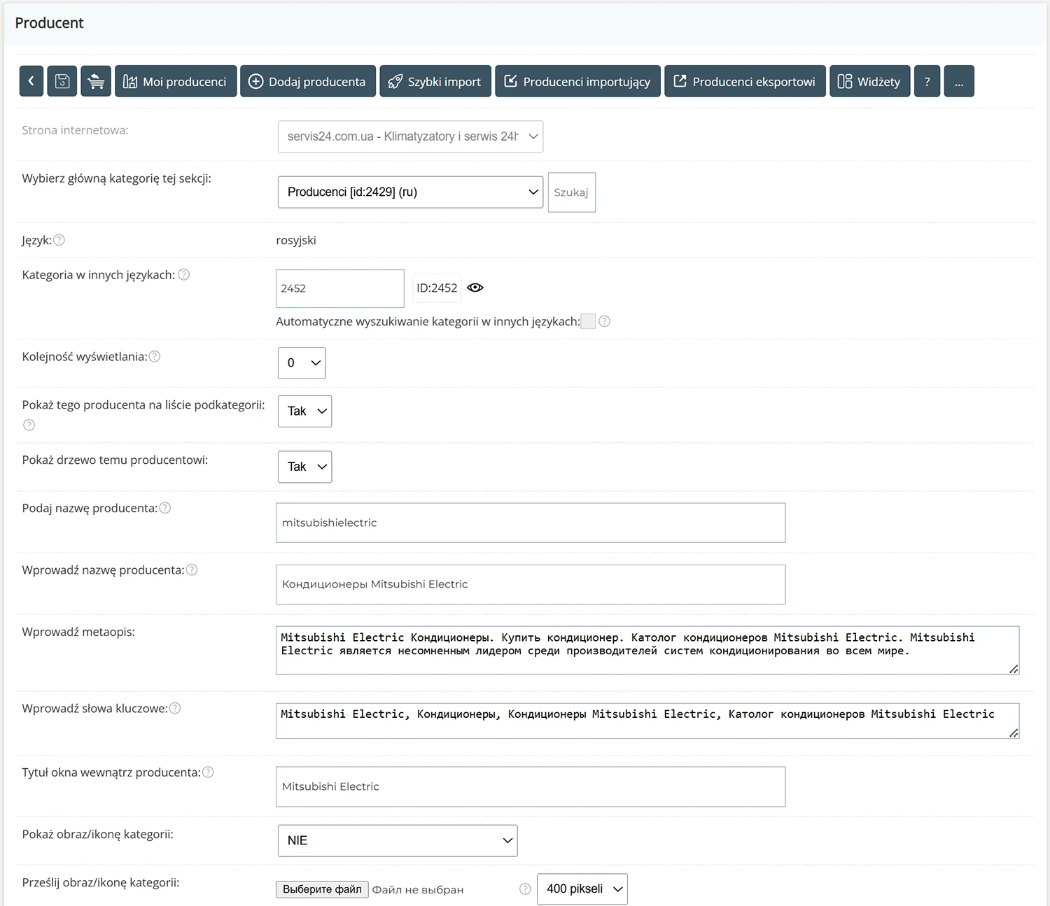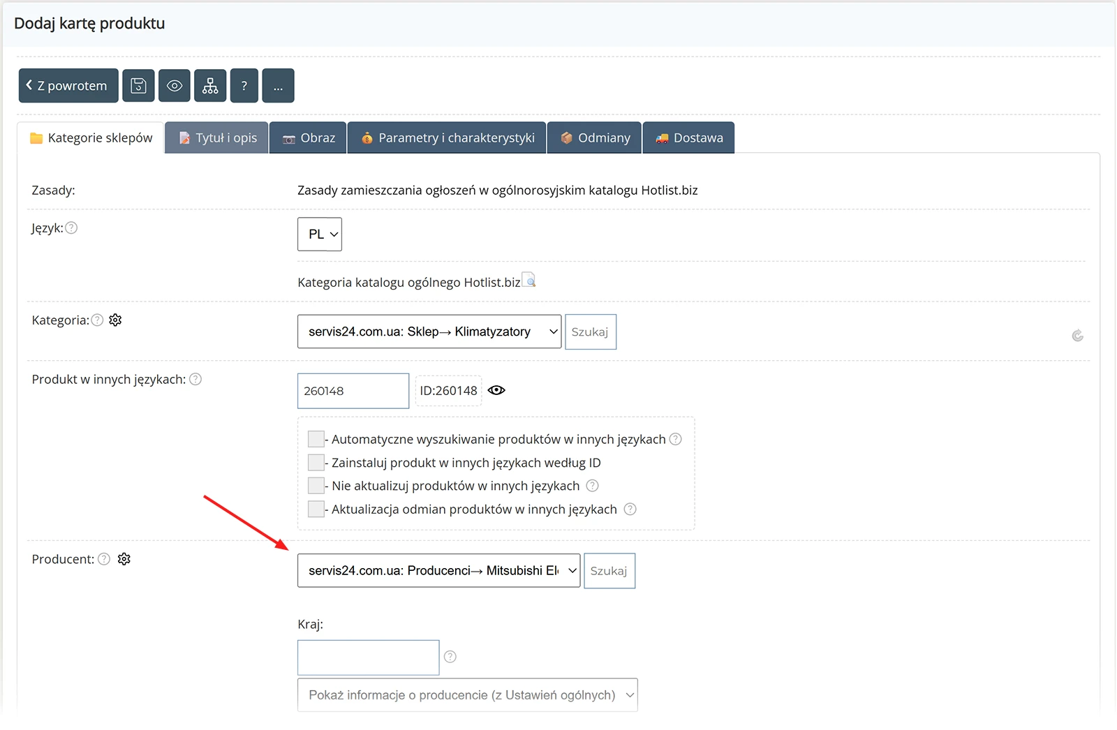 Możesz stworzyć własną listę producentów i przypisać ich do swoich produktów.