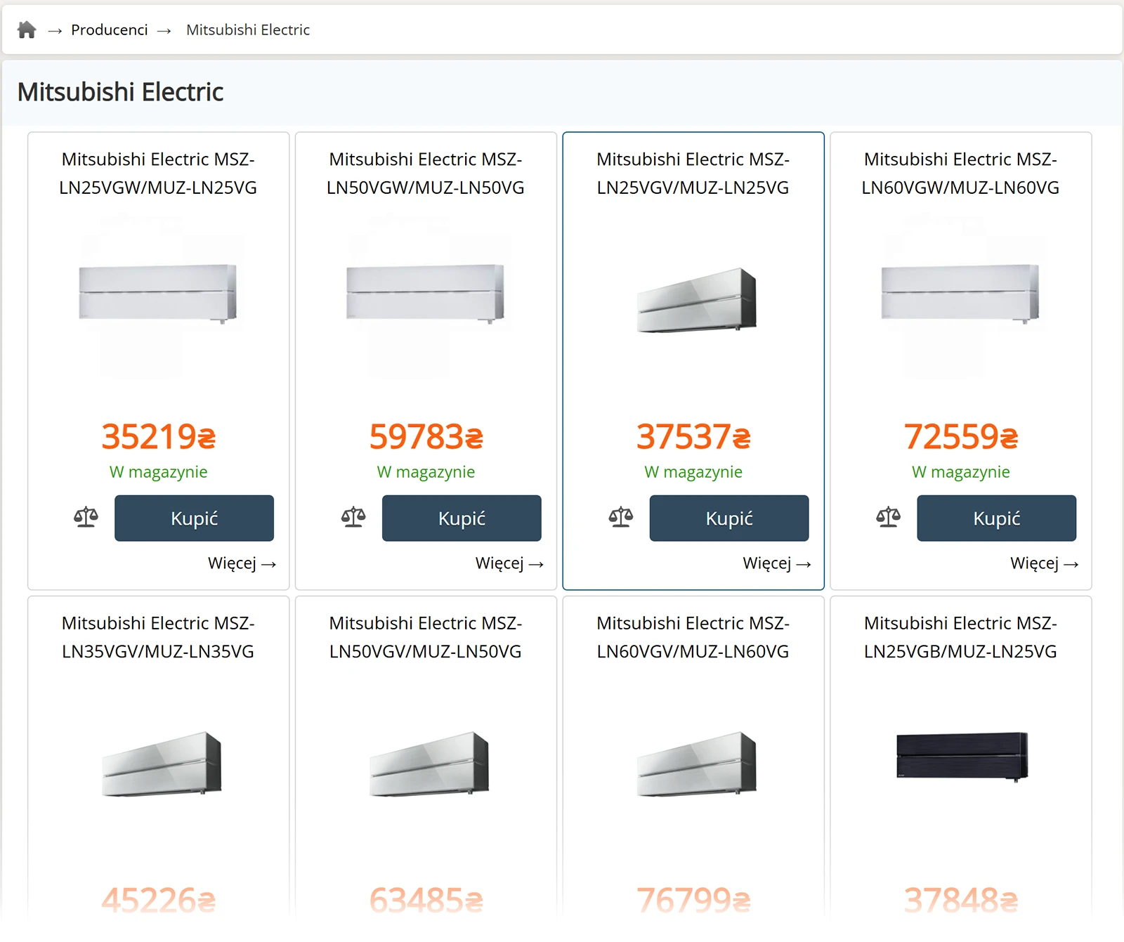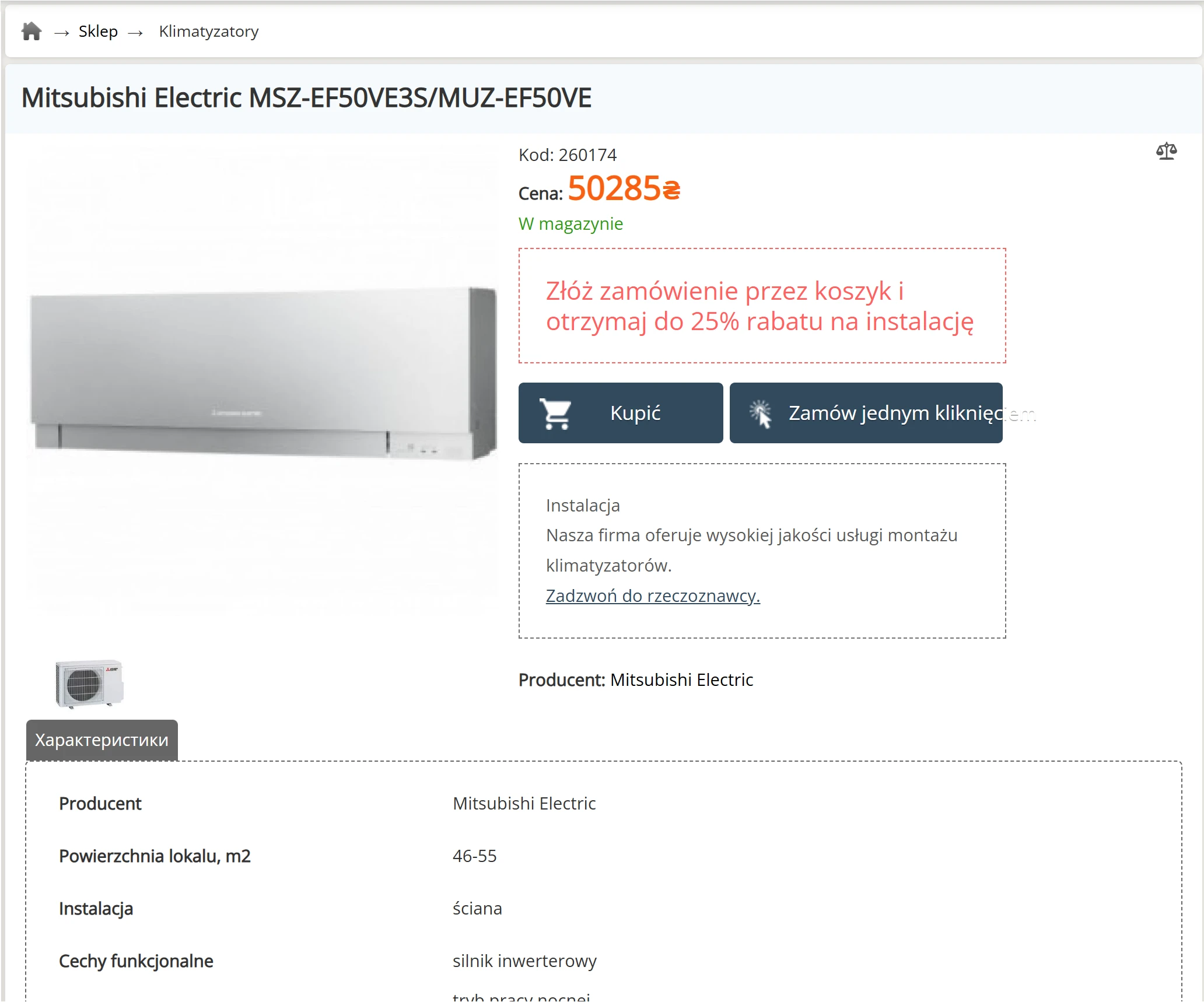 - Rozbudowane karty produktów ze zdjęciami, cechami i wariantami