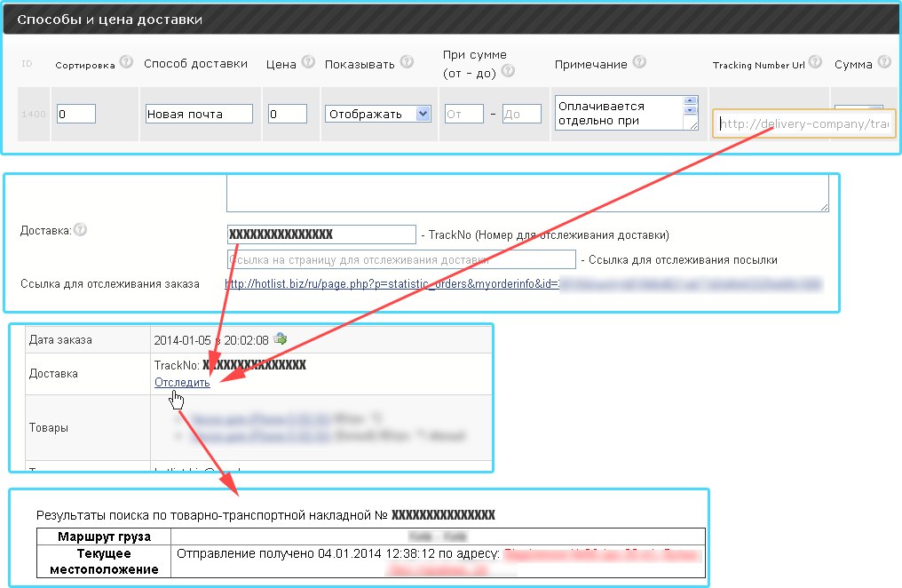 Добавлена возможность автоматической генерации ссылок для отслеживания посылок. Вы можете указать ссылки в списке ваших способов доставки. Ссылки будут отображены заказчику после присвоения номера (Tracking Number) посылки в статистике продаж, с автоматическим присвоением TrackNo к ссылке.