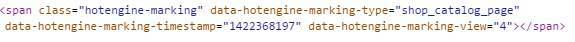 Добавлена специальная разметка, содержащая следующие данные: Тип страницы, Дата страницы, Количество просмотров. Данные отображаются в скрытом блоке с классом . hotengine-marking