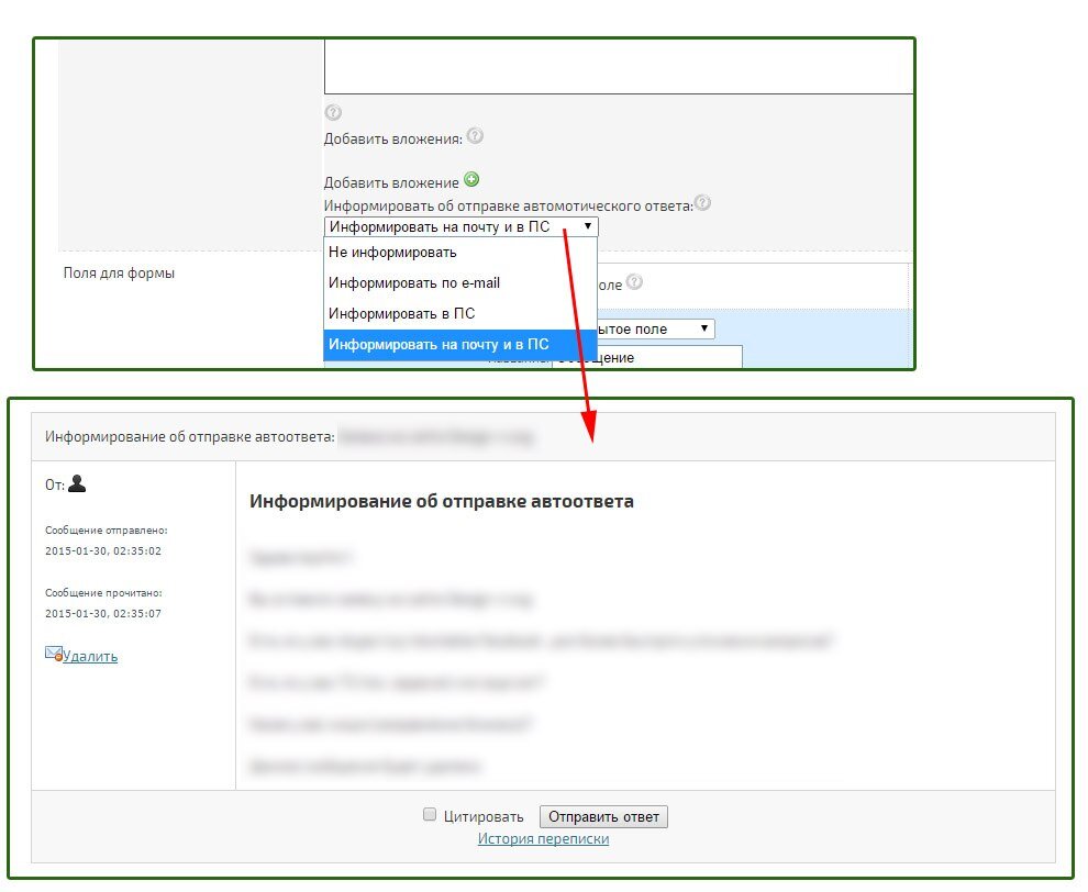 Добавлена настройка оповещения об отправке автоответа в конструкторе форм.