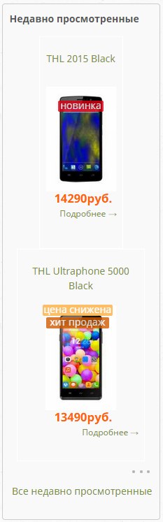 Добавлена функция "Недавно просмотренные" товары. Список можно смотреть в меню или на отдельной странице.