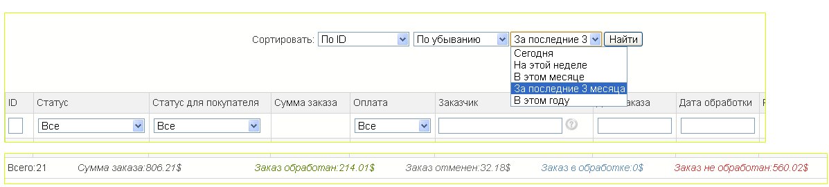 Добавлена возможности выбирать период в статистике продаж, а так же суммарная статистика обработки заказов.