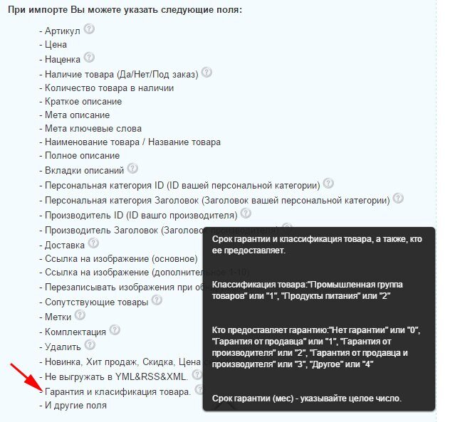 Добавлен импорт и экспорт Гарантии и Классификации товара.
