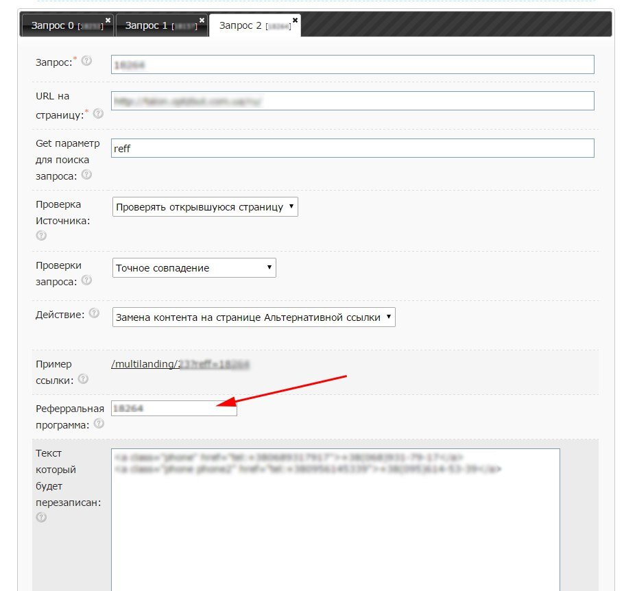 Для функции мультилендинг добавлена Реферальная программа. При открытии партнерской ссылки на странице мультилендига - фиксируется источник заказа. Кроме того при последующем открытии любых страниц меняется необходимое содержимое. Например, при помощи данной функции, можно заменить контактные данные на сайте, и указывать данные вашего партнера. Функция сохранит Cookie источника, и при последующем открытии сайта по прежнему будут перезаписываться блоки сайта.
