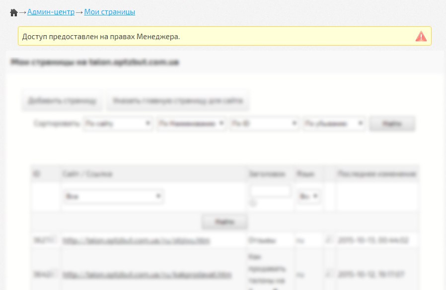 Добавлено Менеджерское управление страниц. Вы можете назначить права менеджеру, для управления вашими страницами.