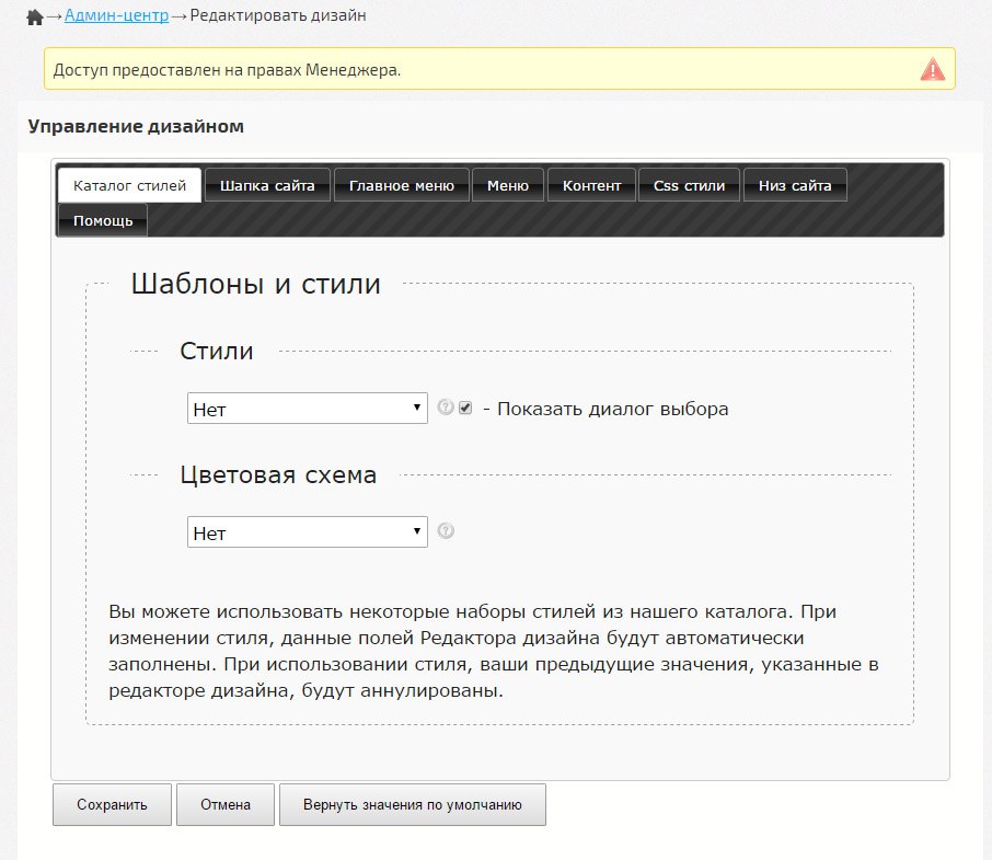 Добавлен Менеджерский доступ в Редактор дизайна.