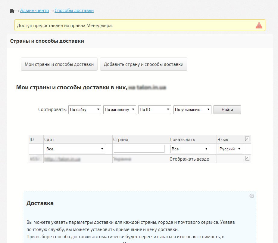 Добавлен менеджерский доступ для редактирования способов доставки.