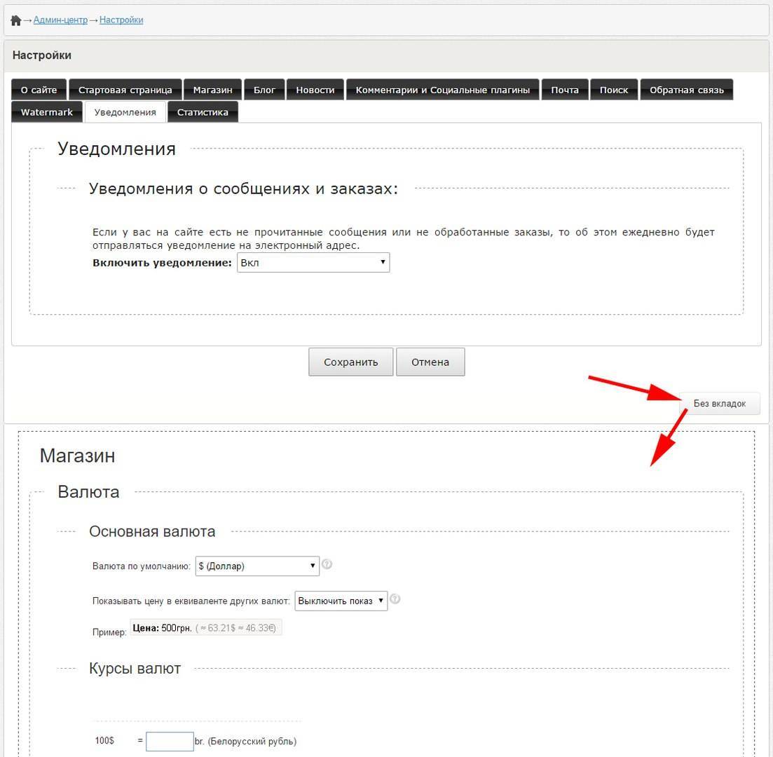 Добавлен режим "Без вкладок" для Настроек сайта, а так же Редактора дизайна.