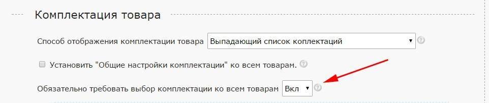 Добавлена общая настройка Обязательно требовать выбор комплектации ко всем товарам.