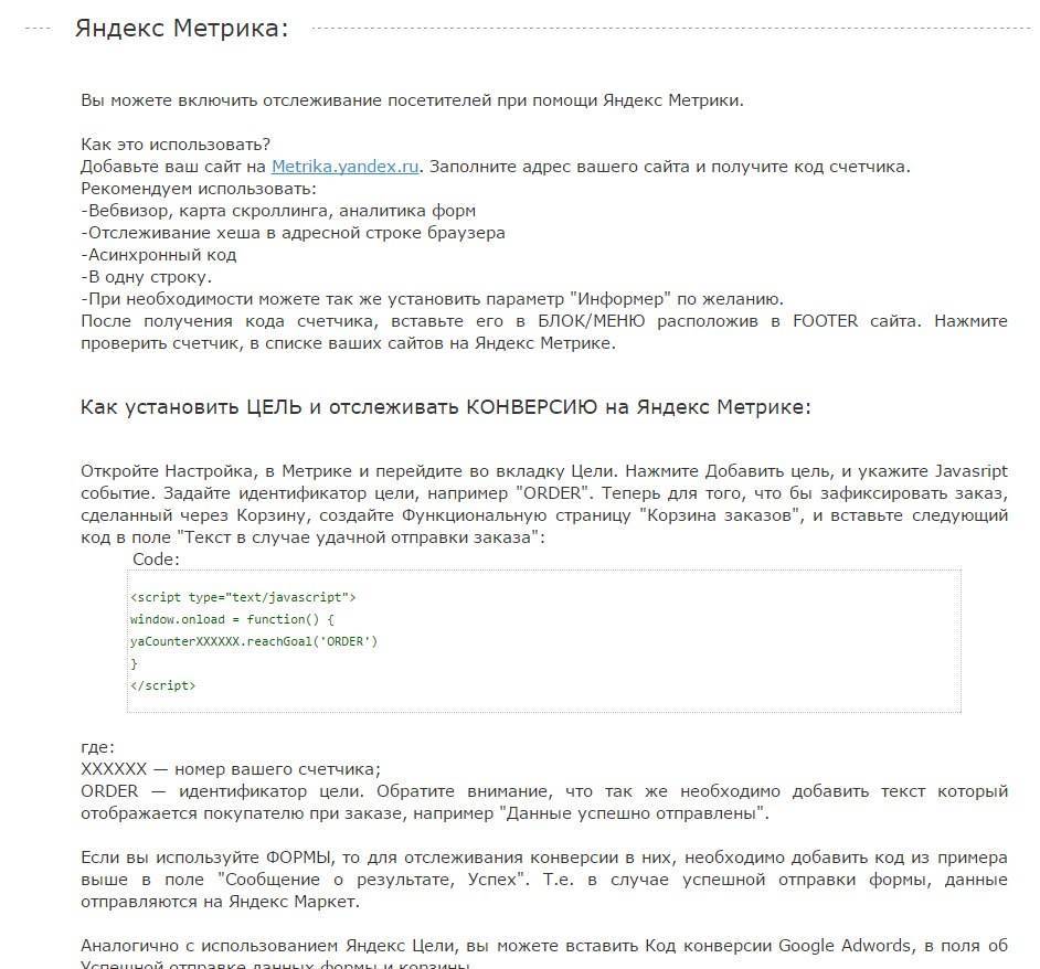 Добавлена подробная инструкция по использованию Яндекс Метрики и Яндекс Цели.