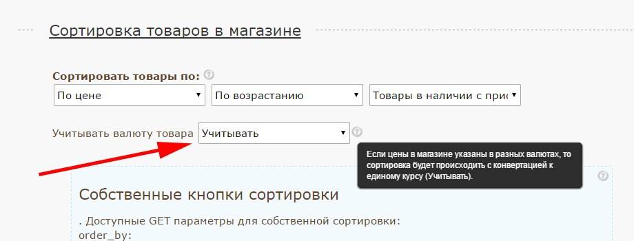 Добавлена возможность учитывать/не учитывать валюту при сортировке товара в каталоге.