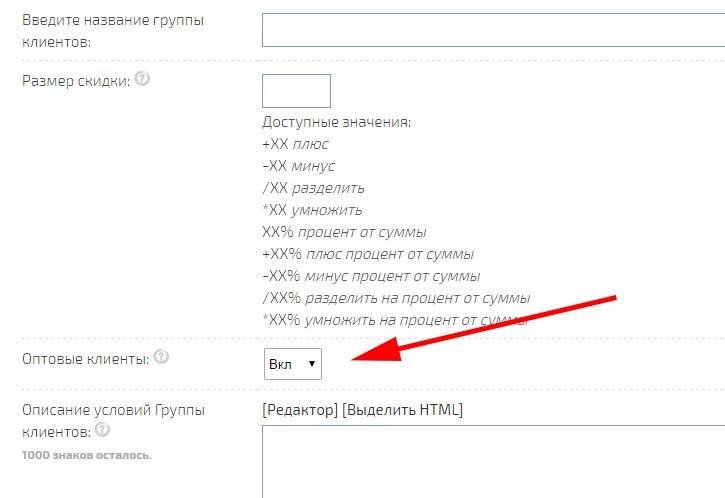Добавлена опция "оптовые клиенты" для Групп клиентов.