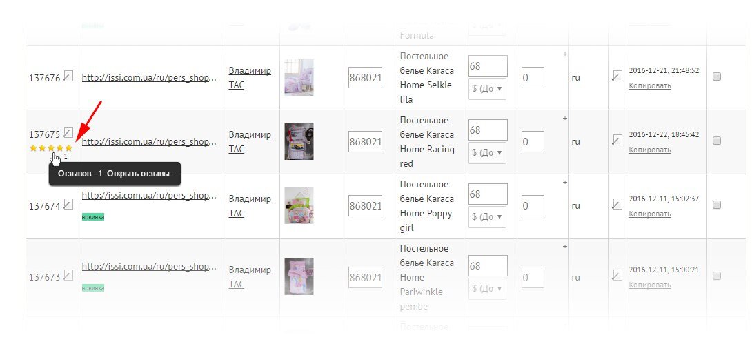 В Админ-центре дополнительно добавлена информация о рейтинге товара и количестве отзывов. При нажатии на рейтинг будут загружены отзывы во всплывающем окне.
