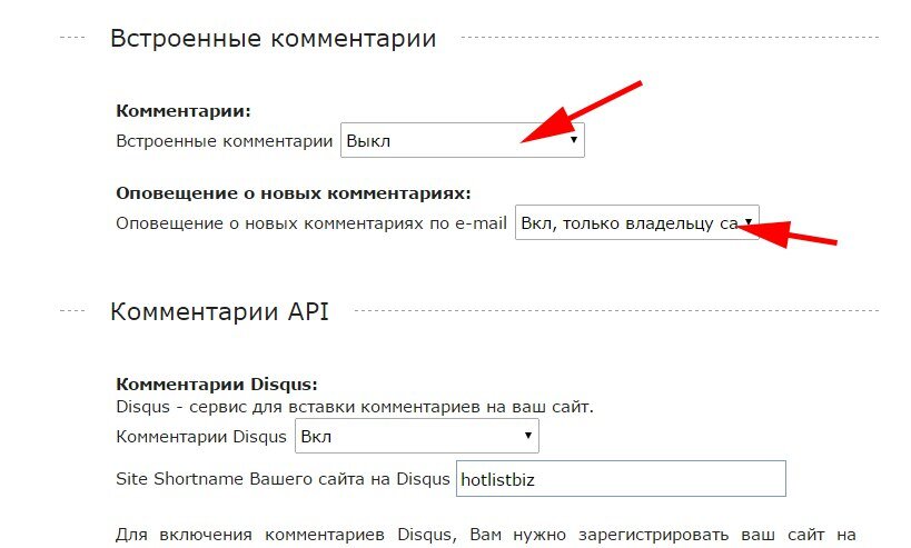 Возобновлена работа встроенной системы комментариев. Теперь вы можете использовать не только сторонние API комментариев, но и встроенные на ваш сайт комментарии с возможностью оповещения по e-mail.