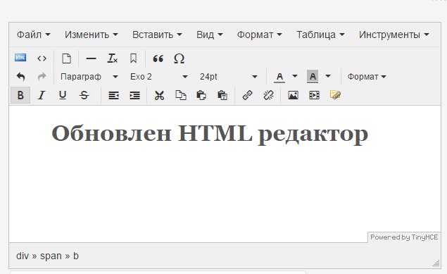 Обновлен HTML редактор Tinymce.