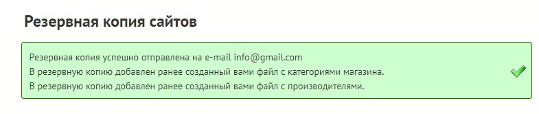 Если при создании резервной копии сайта будет обнаружен ранее созданный файл "Категории магазина" или "Производители", то они будут добавлены в резервную копию.