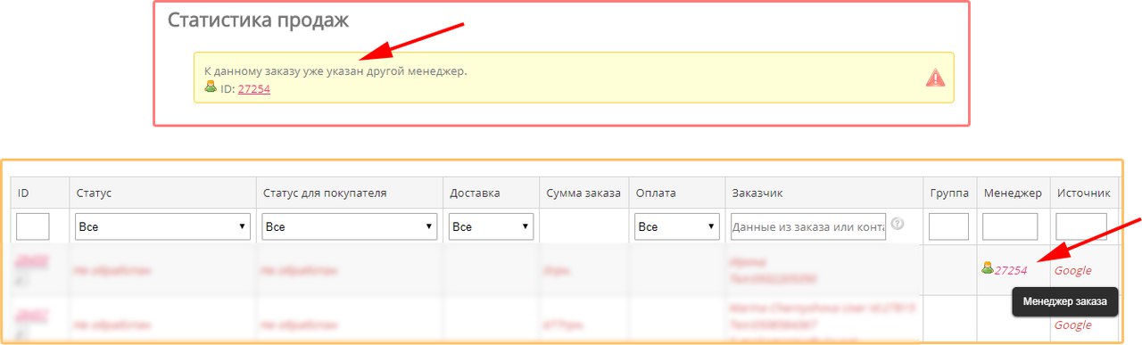 Добавлена информация о текущем менеджере заказа. Если Другой менеджер откроет заказ для редактирования или обработки, то он будет проинформирован о том ,что уже есть другой менеджер, который занимается обработкой заказа.