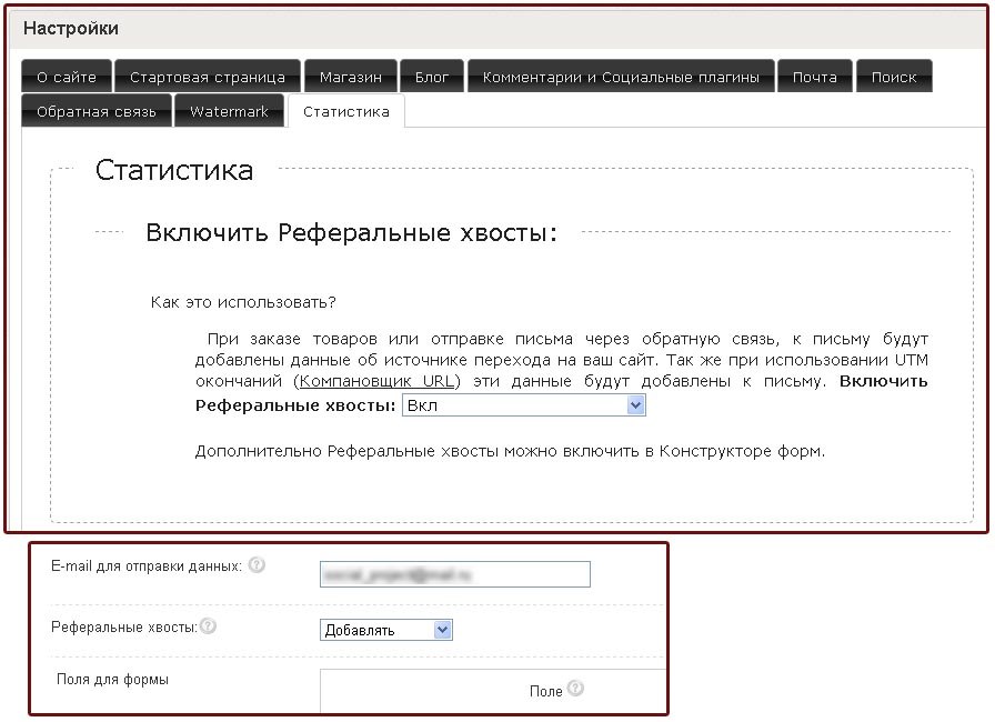 Добавлены Реферальные хвосты и информирование об utm метках. При включении реферальных хвостов, Вы будете проинформированы об источнике перехода при заказе. Так же если в ссылке используются UTM метки (которые можно добавить при помощи компоновщика url от Google), Вы так же будете проинформированы об этом. Дополнительно данная опция доступна для конструктора форм.