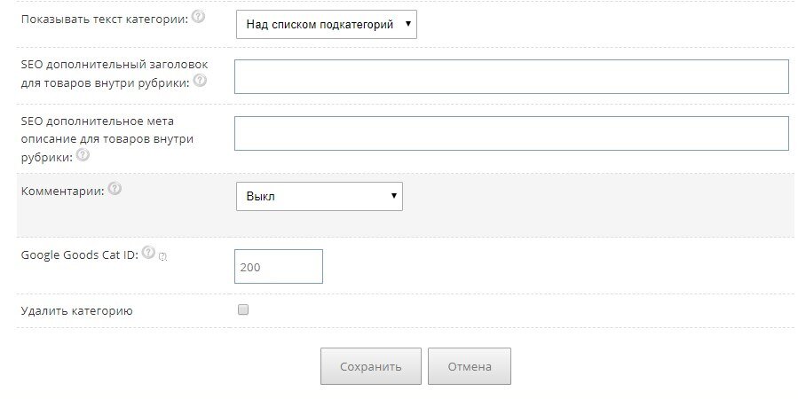Добавлена возможность указывать рубрику Google каталога, для использования в рекламных компаниях. Данные выгружаются в Google Merchant Feed XML. Список категорий для заполнения: