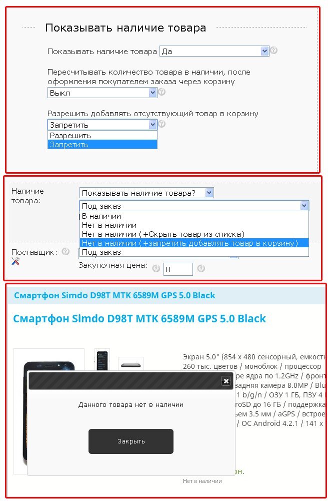 Добавлена возможность запрещать добавлять в корзину отсутствующий товар.