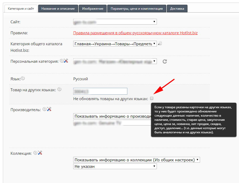 Добавлено автоматическое изменение данных, для товаров на другом языке.