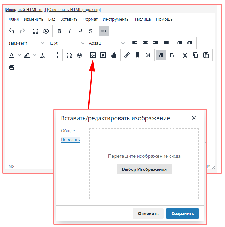 Обновлен редактор (новая версия TinyMCE5). Добавлена загрузка изображений прямо из редактора.