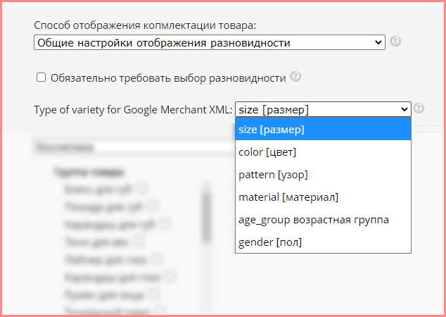 Добавлен [идентификатор_группы_товаров] для Google Merchant, а также поле для указания Типа разновидности. По умолчанию Любая разновидность товара будет - size [размер]