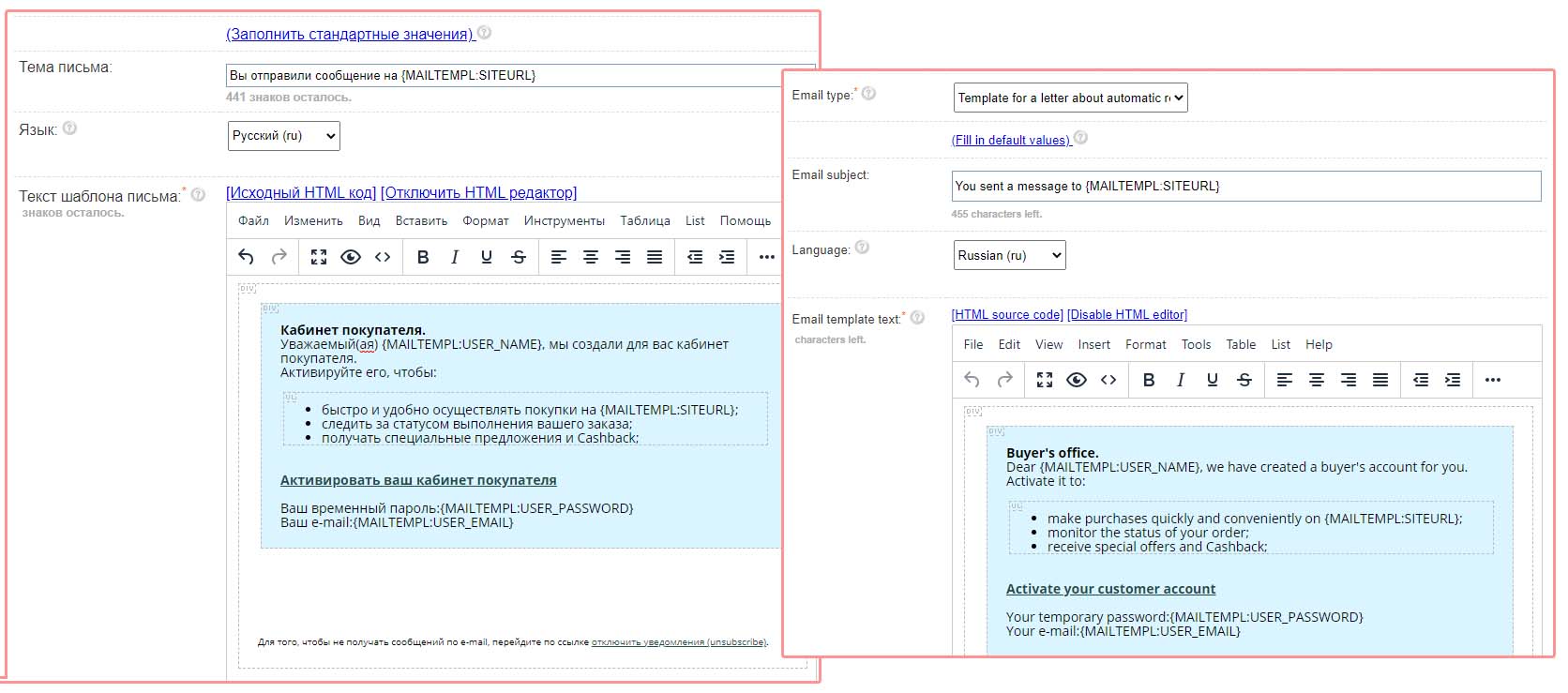 Добавлен Шаблон письма автоматической регистрации пользователей при заказе.