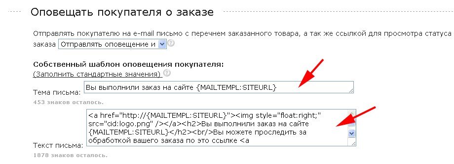 Добавлена возможность создавать собственный шаблон электронного сообщения, отправляемого покупателю при заказе.