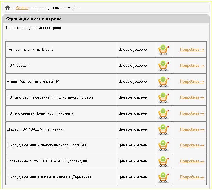 Что бы получить Прайс-лист, достаточно создать страницу с именем "price".