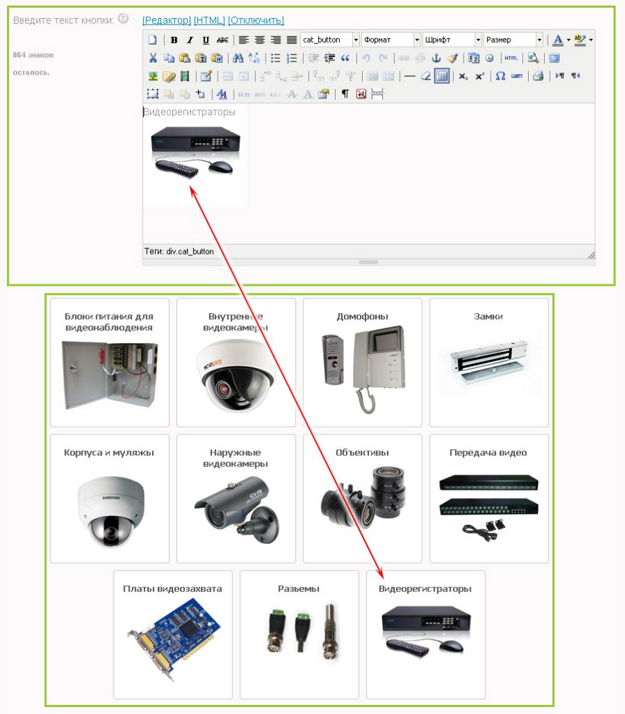 Добавлена возможность редактирования кнопок Категорий магазина или Каталога статей. Можно использовать картинки, свои стили или прочее.
