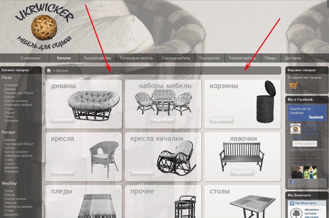 Добавлена возможность указывать ваши СОБСТВЕННЫЕ рубрики в качестве главной страницы. Например, указана рубрика, в которой созданы подрубрики, вот как это выглядит.