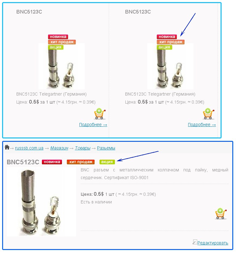 Добавлена иконка для акционных товаров. Изменить иконку можно в CSS стилях.
