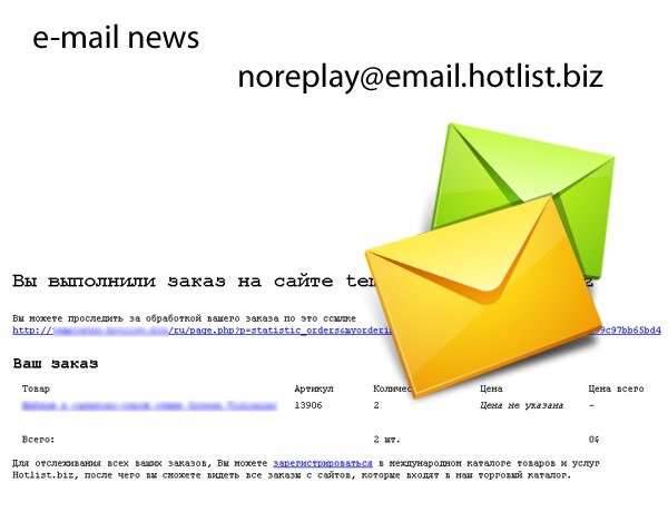1)Уважаемые владельцы сайтов, теперь отправка информации о заказах будет с адреса noreplay[at]email.hotlist.biz , для того, что бы наверняка получить сообщение о заказе, рекомендуем добавить ящик в список контактов.