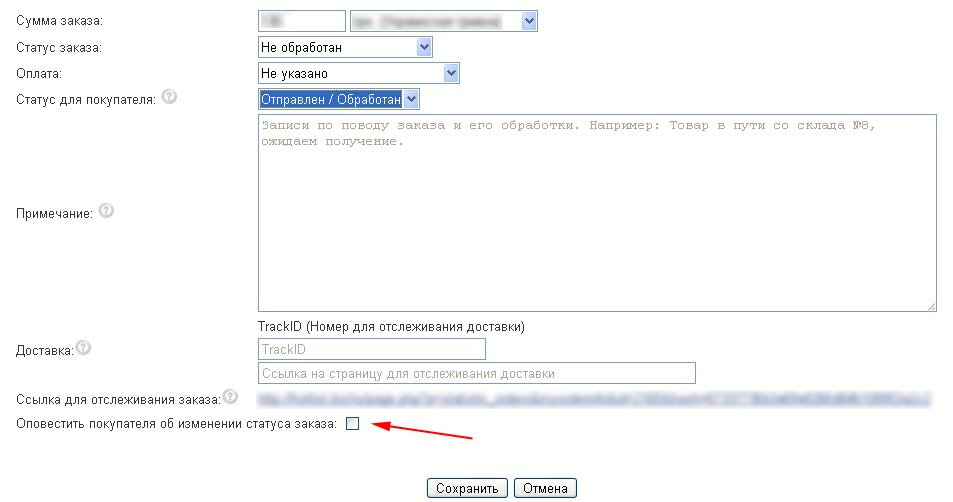 Добавлена возможность оповещать покупателей об изменении статуса их заказа.