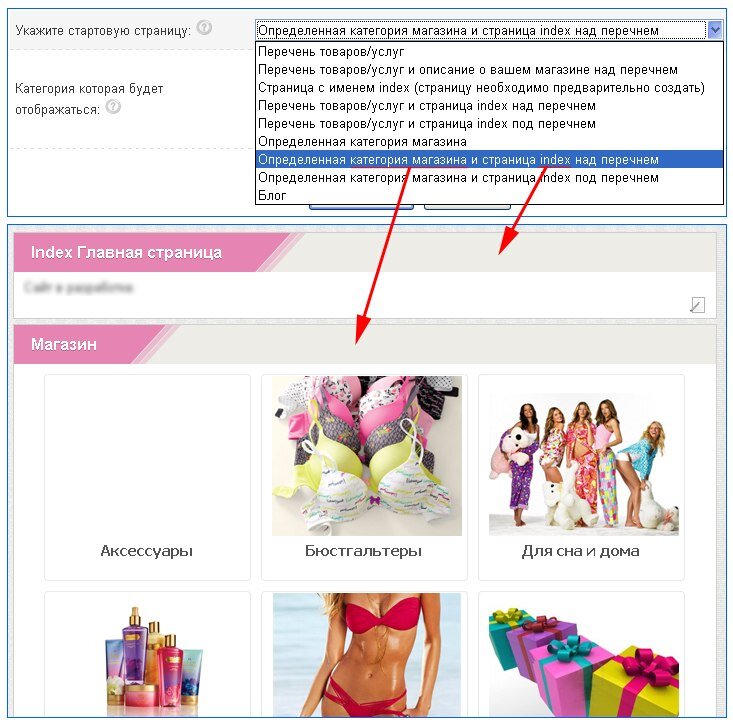 Добавлена возможность использовать Категорию магазина + Страницу INDEX, в качестве Главной страницы сайта.