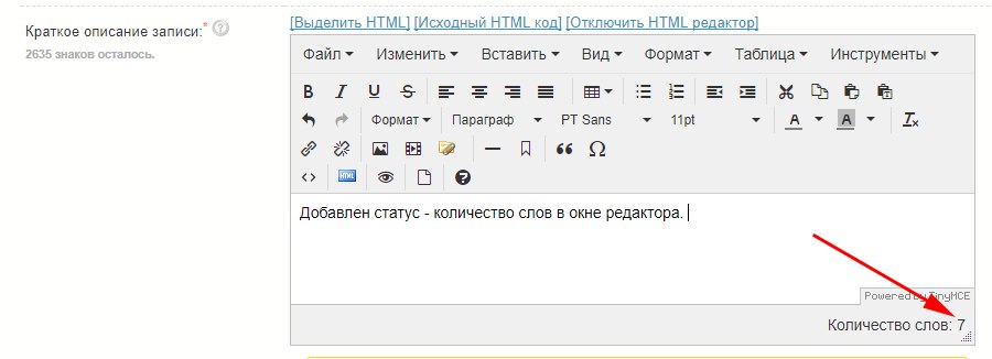 Додано відображення кількість слів у редакторі.