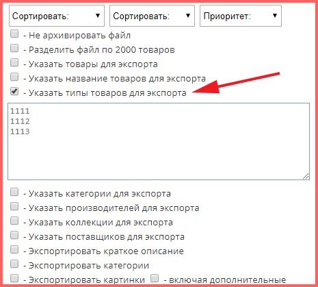 Додано можливість вказати Типи товарів при експорті. Поля характеристик при цьому також будуть тільки з обраних типів товарів.