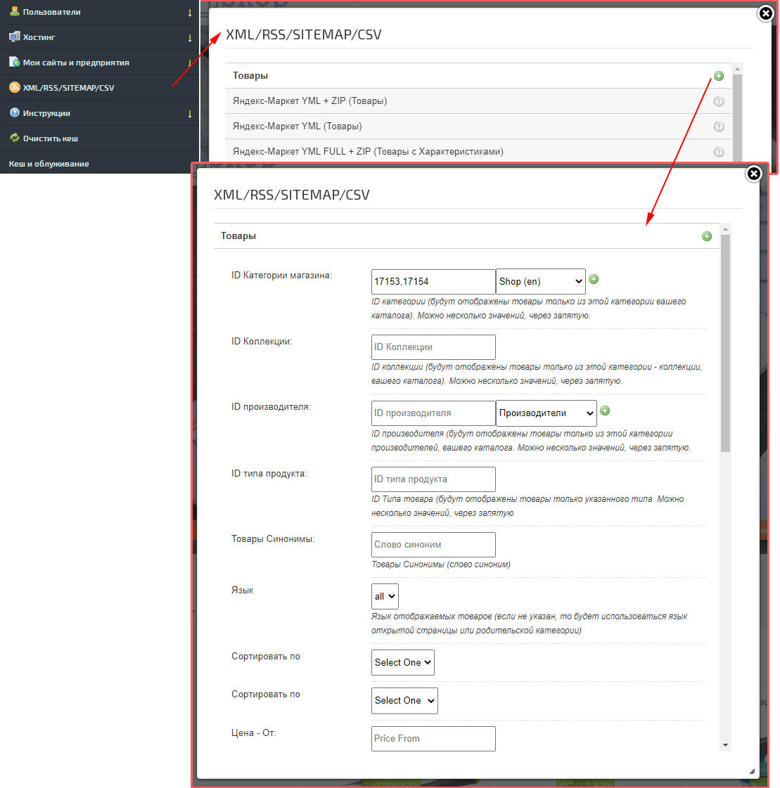 Додано віджет керування XML/YML/CSV/JSON вивантаженнями