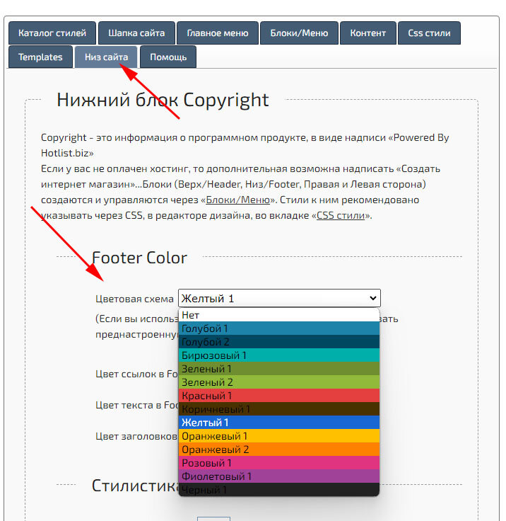 Додані колірні схеми для Footer Widget